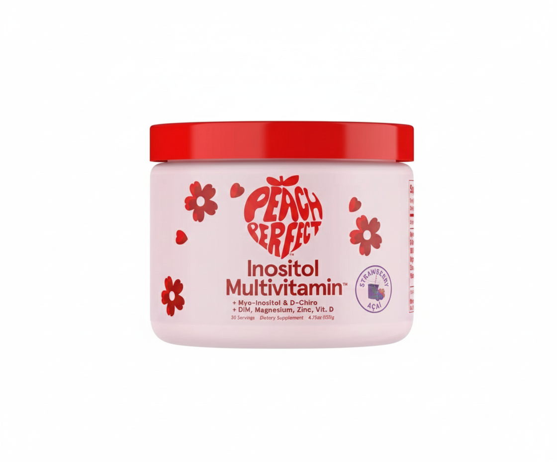 Peach Perfect Inositol Multivitamin es un suplemento natural diseñado para regular el equilibrio hormonal, favorecer la ovulación y mejorar el bienestar femenino desde adentro. Su fórmula avanzada combina Myo-Inositol, D-Chiro Inositol, magnesio, zinc, omega 3 y vitamina D3, nutrientes que trabajan en conjunto para apoyar el metabolismo hormonal, aumentar la energía y promover una piel, cabello y uñas más saludables.